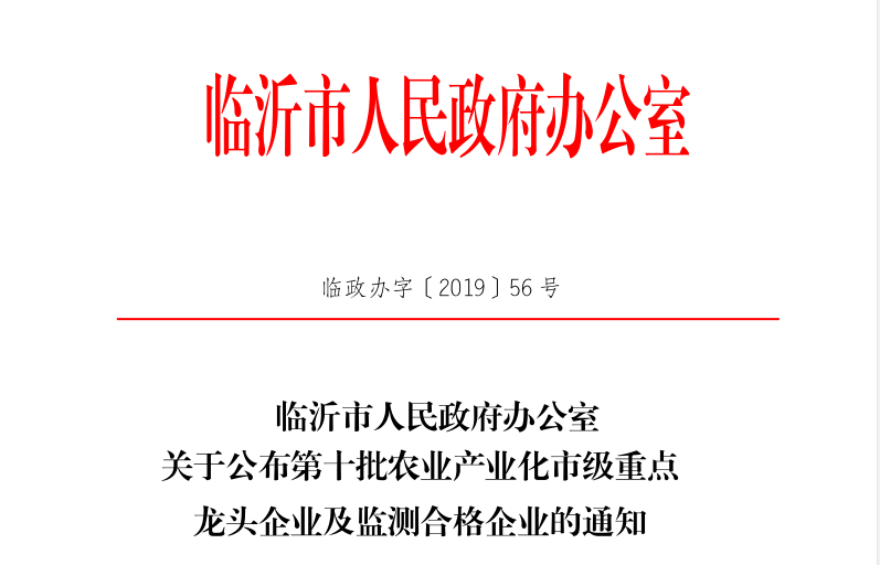 【集团资讯】喜讯:兰陵种鸡公司荣获91视频污污污黄色产业化市级重点龙头企业称号