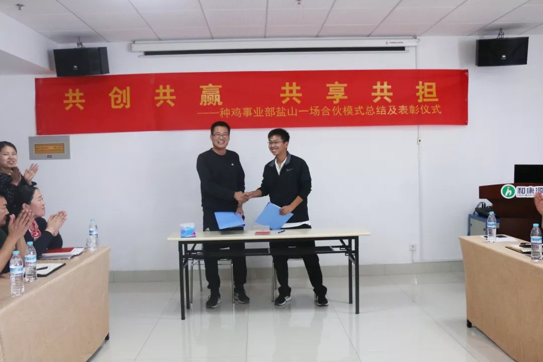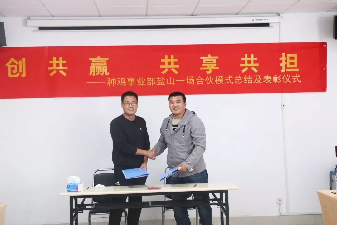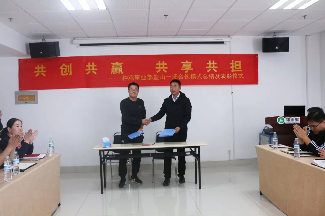 10月5日下午,集团组织了盐山种鸡一场新模式总结分享会。对本场本批次参与新模式的郭明、李玉晨、王克前、郭敬等4名管理人员进行了表彰激励。